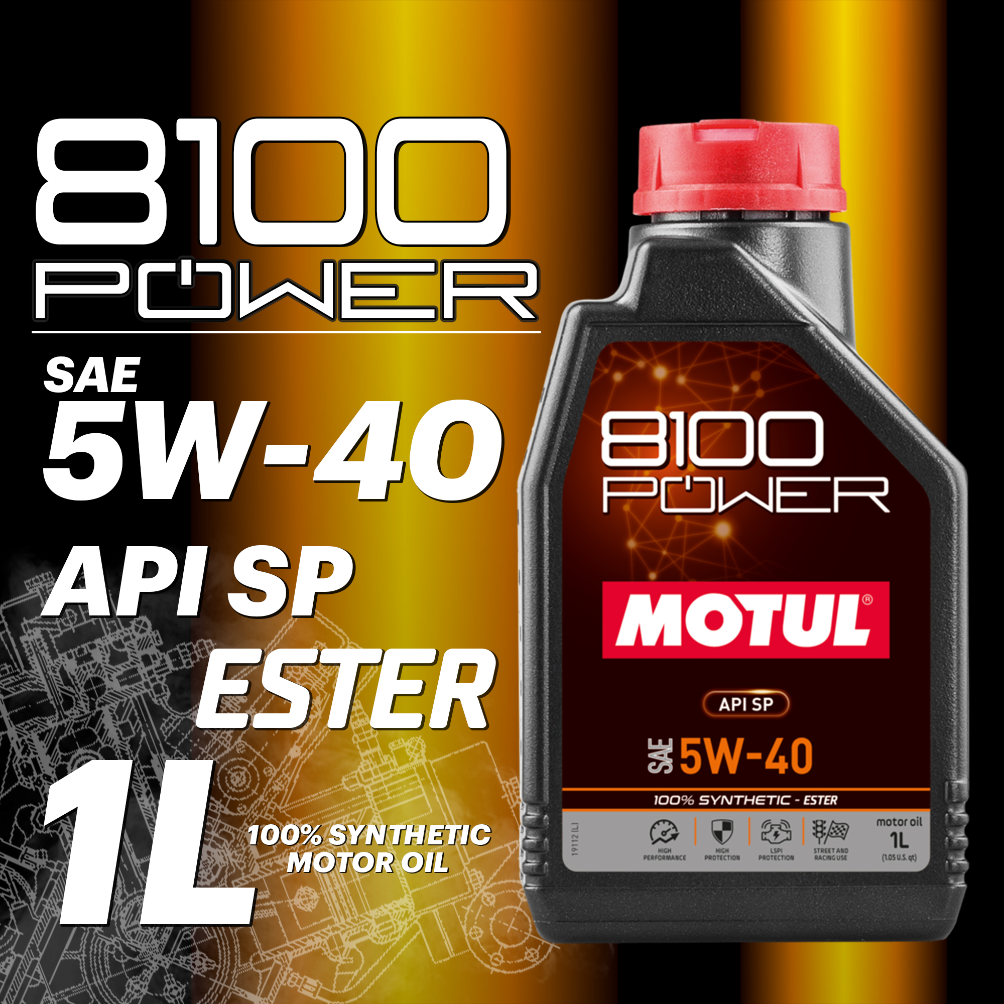 Моторное масло MOTUL 8100 POWER 5W-40, 1л