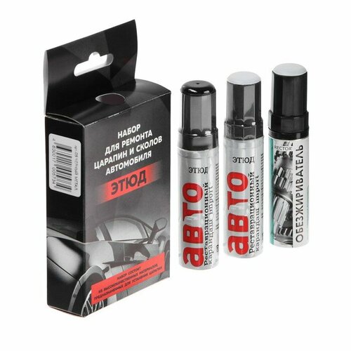Набор этюд для ремонта царапин и сколов автомобиля, черный металлик ЭТЮД