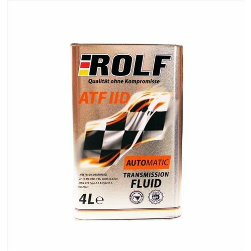 ROLF ATF IID - современная многофункциональная жидкость для автоматических коробок передач и гидроусилителей рулевого управления. Производится на основе высококачественных минеральных базовых масел глубокой очистки с высоким индексом вязкости. Содержит высокоэффективные антиокислительные, противоизносные, моющие и противопенные присадки и специальные модификаторы трения.ПрименениеROLF ATF IID предназначена для использования в автоматических коробках передач со ступенчатым переключением и гидротрансформатором, легковых и грузовых автомобилей различных годов выпуска, городских и междугородных автобусов, дорожно-строительной и муниципальной техники, где рекомендуется использовать жидкости спецификации GM ATF DEXRON IID в автоматических КПП ZF, Voith и других производителей в соответствии со списком соответствий. Допускается применение в гидроусилителях рулевого управления там, где рекомендуется применение жидкостей спецификации GM ATF DEXRON IID.Ключевые особенности• Улучшает работу фрикционов автоматических трансмиссий и обеспечивает плавное переключение передач.• Гарантирует полную стабильность свойств на весь период эксплуатации.• Отличается высокой теплоемкостью и стабильной вязкостью при большом перепаде температур.• Обеспечивает увеличенные интервалы замены.• Отличные низкотемпературные свойства масла обеспечивают защиту узлов трансмиссии в момент холодного пуска двигателя.