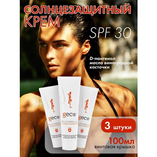 Крем GECO солнцезащитный, набор 3 Шт. (100 мл.) от воздействия солнечных УФ излучений водостойкий, заживляющий С винтовой крышкой