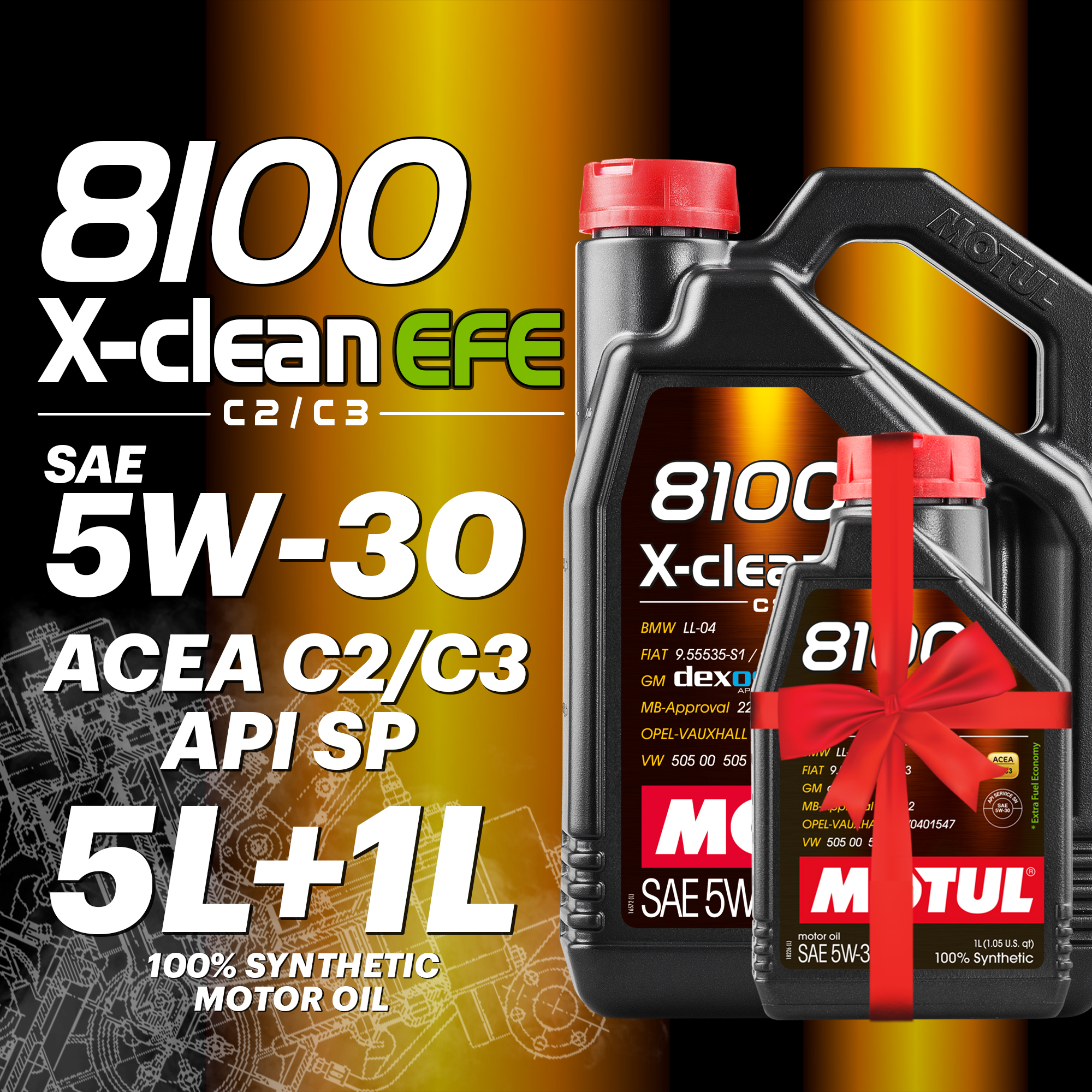 Моторное масло MOTUL 8100 X-clean EFE, 5W-30, 5л + 1л