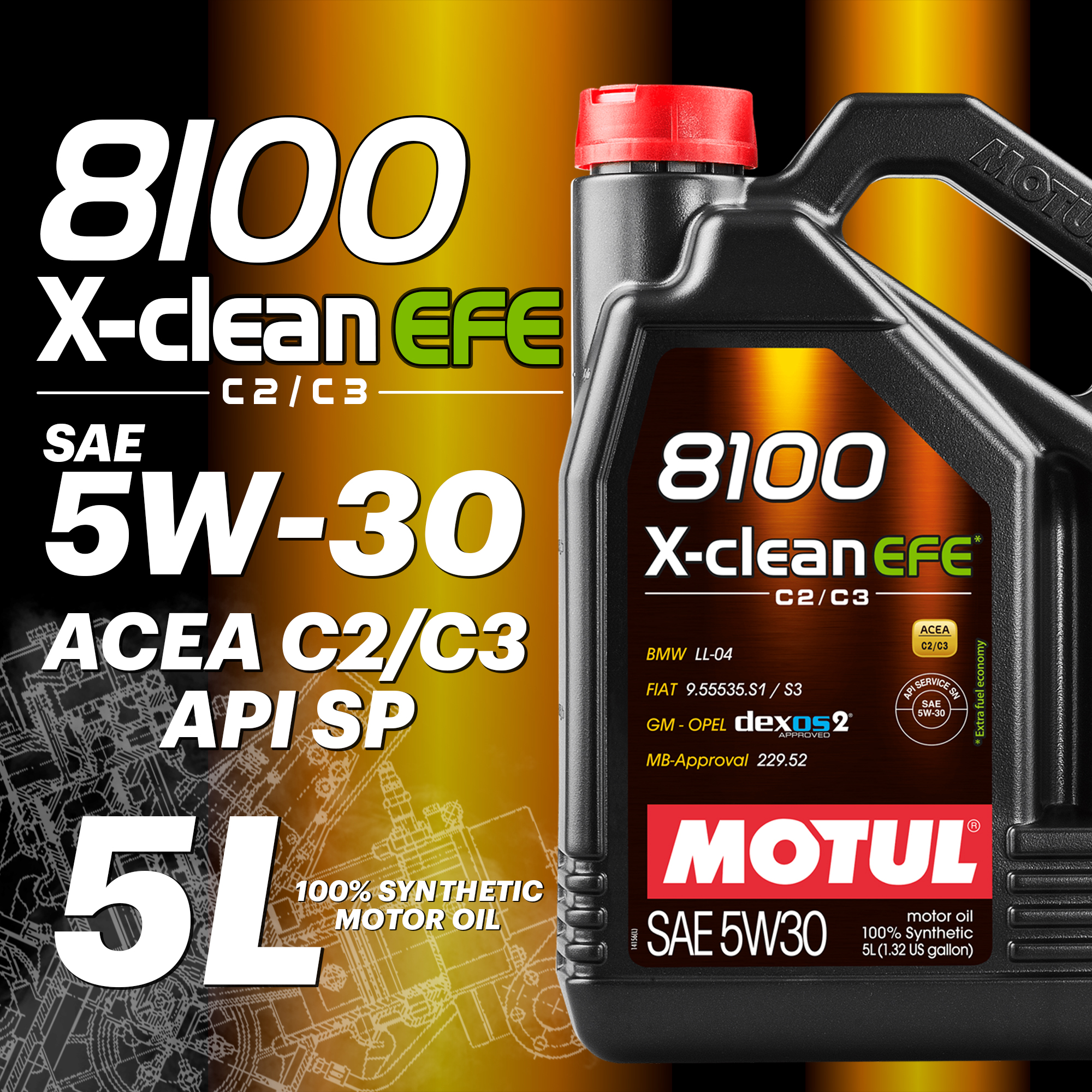 Усовершенствованное 100% синтетическое моторное масло одновременно являющееся энергосберегающим и обладающее высокими защитными свойствами. Благодаря повышенным энергосберегающим свойствам имеет одобрения BMW Group, MERCEDES и OPEL. Специально разработано для бензиновых и дизельных двигателей автомобилей последнего поколения, в т.ч. оснащенных турбонаддувом и непосредственным впрыском. Предназначено для двигателей отвечающих требованиям норм Euro 4, Euro 5 или Euro 6, и требующих использования в них масла стандарта ACEA C3 с высокой вязкостью HTHS (>3.5 мПа.с), сниженной сульфатной зольностью (0,8%), содержанием фосфора (0.07%-0.09%) и серы (0.3%) - «Mid SAPS» или энергосберегающих масел стандарта ACEA C2 с низким коэффициентом трения и низкой вязкостью HTHS (> 2.9 мПа.с), сниженной сульфатной зольностью (0,8%), содержанием фосфора (0.09%) и серы (0.3%) - «Mid SAPS». Применяется для автомобилей, которые требуют энергосберегающих (Fuel Economy) масел стандарта ACEA C2. Совместимо с каталитическими нейтрализаторами и сажевыми фильтрами (DPF). Данный тип масла может быть не предназначен для использования в некоторых двигателях. В случае сомнений, обратитесь к инструкции по эксплуатации транспортного средства