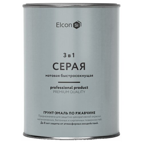 Грунт-эмаль по ржавчине 3в1, краска по металлу, по ржавчине, быстросохнущая, матовая, серая, 0,8 кг Elcon