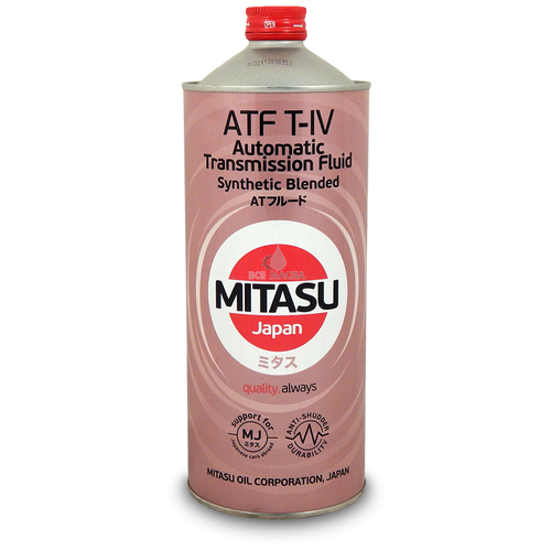 MITASU ATF T-IV Synthetic Blended – полусинтетическая жидкость для автоматических трансмиссий, для которых рекомендованы жидкости TYPE T-IV. Обладает прекрасными противовибрационными свойствами, отвечает международным стандартам и значительно превосходит требования TOYOTA для автоматических трансмиссионных жидкостей TYPE T-IV. Цвет жидкости красный.применениеMITASU ATF T-IV Synthetic Blended подходит для автомобилей TOYOTA, для которых рекомендована жидкость TYPE T-II, T-IV. Допустимо использование в автоматических трансмиссиях, где требуются жидкости типов D-II и D-III. Также может использоваться в автоматических трансмиссиях, установленных на автомобилях других производителей, если для них рекомендована жидкость ATF T-IV.продукт отвечает требованиям∙ TOYOTA ATF TYPE T-IVпреимуществаMITASU ATF T-IV Synthetic Blended обеспечивает:∙ Превосходную защиту от износа∙ Корректную работу автоматических трансмиссий в различных режимах эксплуатацииMITASU ATF T-IV Synthetic Blended обладает прекрасными противовибрационными свойствамиНовейшие технологии MITASU OIL CORPORATION, Japan позволяют выпускаемым компанией жидкостям для автоматических коробок передач превосходить требования таких производителей автомобилей, как: TOYOTA, LEXUS, DAIHATSU и других.