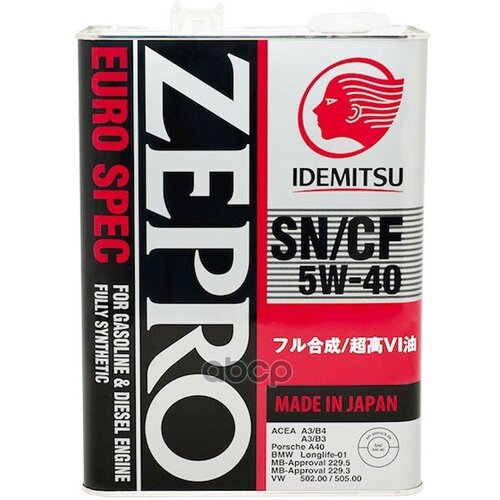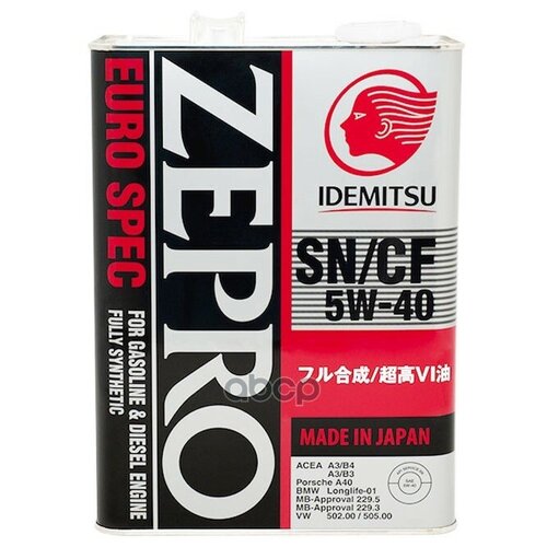 Масло IDEMITSU 5/40 ZEPRO EURO SPEC синтетическое SN 4л IDEMITSU 1849-004 | цена за 1 шт | минимальный заказ 1