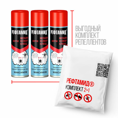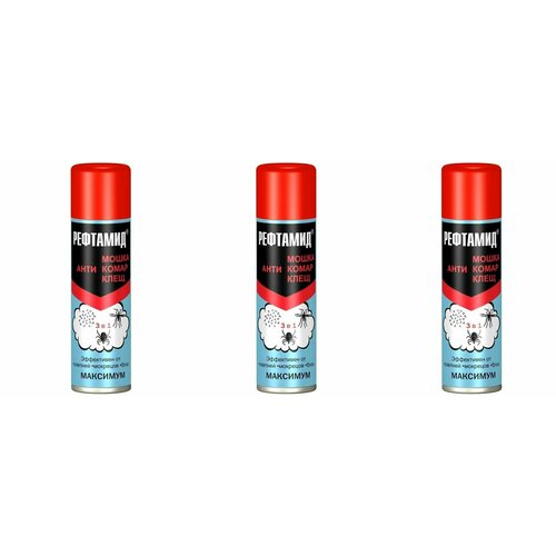 Набор баллонов Рефтамид 3 в 1 аэрозоль-репеллент Максимум от комаров, клещей, мошки (440 мл) - 1 уп