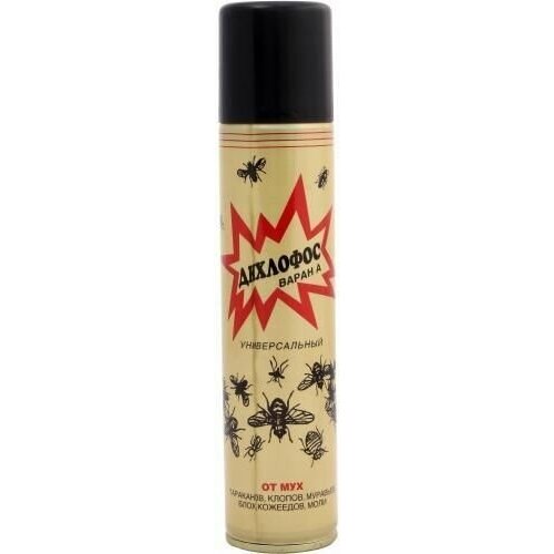 Дихлофос Варан А универсальный золотой 180 мл предназначен для уничтожения насекомых. Входящие в его состав вещества вызывают гибель насекомых уже в первые секунды его применения. Средство не пачкает опыляемые поверхности, без запаха, безопасно для людей и животных.