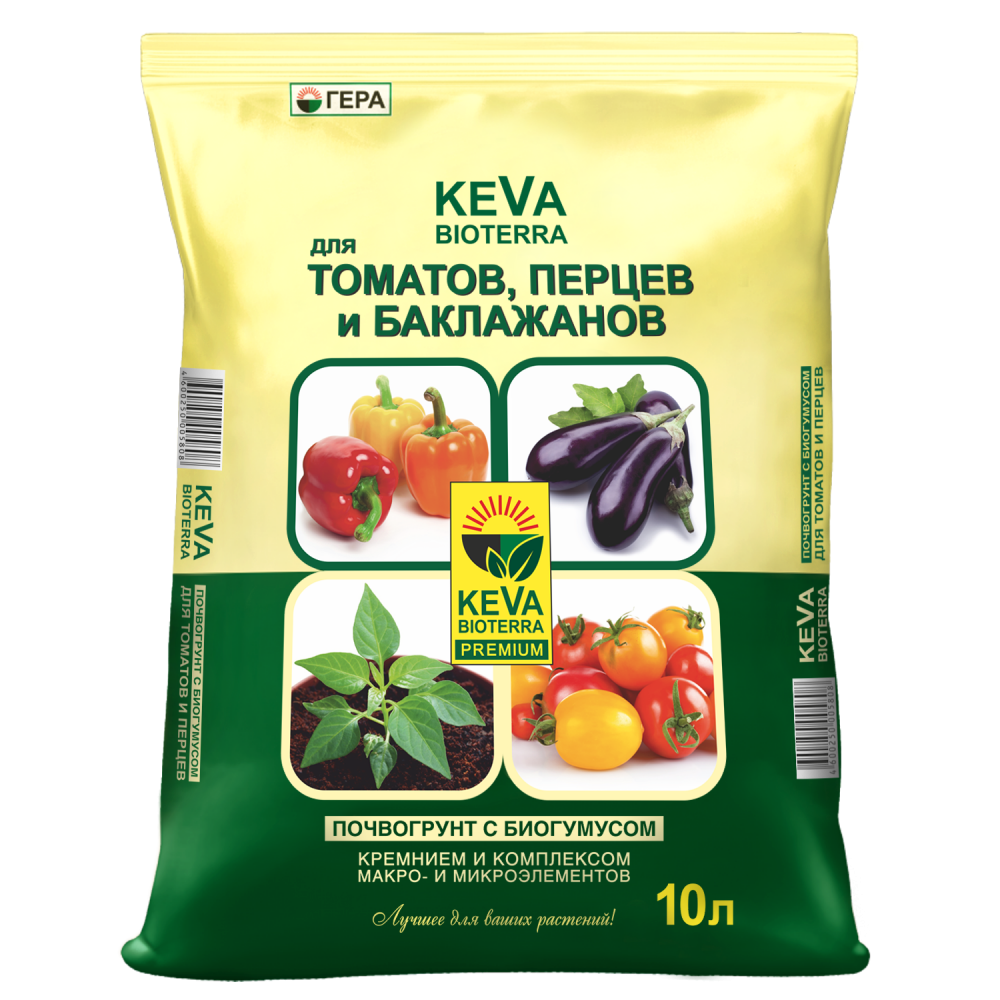 Грунт для томатов и перцев Keva Bioterra - субстрат для выращивания рассады и подкормки растений в период вегетации. Сбалансированный состав грунта, включающий торфы различной степени разложения, песок и комплексное удобрение, обеспечивает здоровый рост и развитие культур. Отлично подходит для высадки пасленовых: томатов, баклажанов, перцев. Смесь содержит натуральный биогумус - продукт переработки навоза калифорнийскими дождевыми червями, который улучшает физико-химический состав почвы, повышая ее плодородность. Грунт расфасован в прочные полиэтиленовые пакеты объемом 10л.