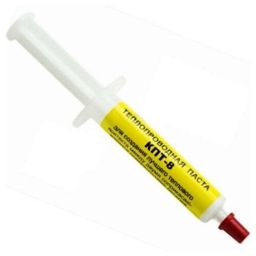 Термопаста КПТ-8 - это термоотводящая паста для радиаторов. Термопаста КПТ-8 предназначена для создания лучшего теплового контакта между двумя соприкасающимися поверхностями деталей оборудования различного назначения, путем заполнения зазора между ними. Способ применения термопасты: выдавить необходимое количество пасты; нанести, до образования ровного слоя, по всей поверхности теплового контакта; соединить детали, слегка сдавливая. Термопаста КПТ-8 помогает эффективному охлаждению процессора отводя выделяемое тепло к радиатору. Термопаста КПТ-8 имеет прекрасную стабильность, она не рассыпается и не вытекает. Термопаста КПТ-8 не проводит электричество. Вы можете приобрести термопасту КПТ-8 в нашем интернет-магазине уже сегодня по очень низкой цене. Характеристики:Тип товара: термопастаМодель: КПТ-8Испаряемость: <0.001 %Волатильность: <0.005 %Теплопроводность, Вт/м*К: 1, 8-2, 0Диэлектрическая проницаемость: 4, 8 (при частоте 10МГц)Удельное объемное электрическое сопротивление: 10^13 Ом*смЭлектрическая прочность: 10-15 кВ/ммТангенс угла диэлектрических потерь: 0, 009Упаковка: шприцВес: 2 грРабочий температурный диапазон: от -60 до +180Цвет: серый.