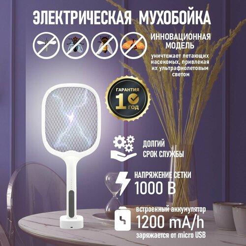 Мухобойка электрическая аккумуляторная с USB и подставкой 1000 В REXANT