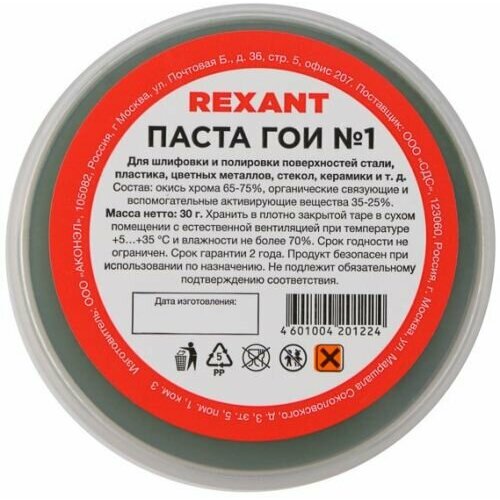 Паста ГОИ полировальная REXANT №1, 30 гр. 09-3795
