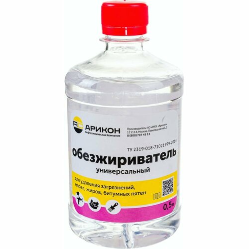 Универсальный обезжириватель Арикон бутылка ПЭТ 0.5л OBE05, применяемый для очистки и обезжиривания поверхностей деталей на всех этапах кузовного ремонта. Пригоден для обезжиривания старых лакокрасочных покрытий, включая разные стали, оцинкованной стали, алюминия, загрунтованных и шпатлеванных поверхностей. Используется в ответственных процессах обезжиривания и мойки деталей, узлов и агрегатов перед закаливанием и нанесением гальванопокрытий, перед окраской любой поверхности, поскольку не оставляет при испарении пленки из нерастворимых компонентов (жиров, масел). Также используется для очистки тканей, кожи. С легкостью удаляет масляные, битумные, силиконовые, восковые загрязнения.