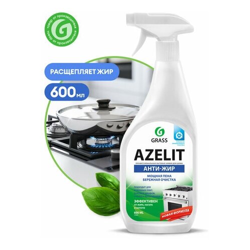Средство для чистки плит, духовок, грилей от жира/нагара 600 мл GRASS AZELIT, щелочное, распылитель, 97537, 218600.Продается набором по (4 шт.)Концентрированное средство для удаления жира, нагара и копоти со сковородок, кухонных плит, коптильных камер, фритюрниц, грилей, духовых шкафов, микроволновых печей и т. д.Содержит активные чистящие вещества, которые помогают максимально эффективно справиться с застарелыми загрязнениями.Состав: более или равно 30% очищенная вода; менее 5%: неионогенные ПАВ, соль эдта, гидроксид натрия, гидроксид калия, органический растворитель, ароматизирующая добавка.Способ применения:Нанести на очищаемую поверхность, оставить не более чем на 30 секунд, в зависимости от загрязнения можно увеличить время экспозиции до 2 минут.