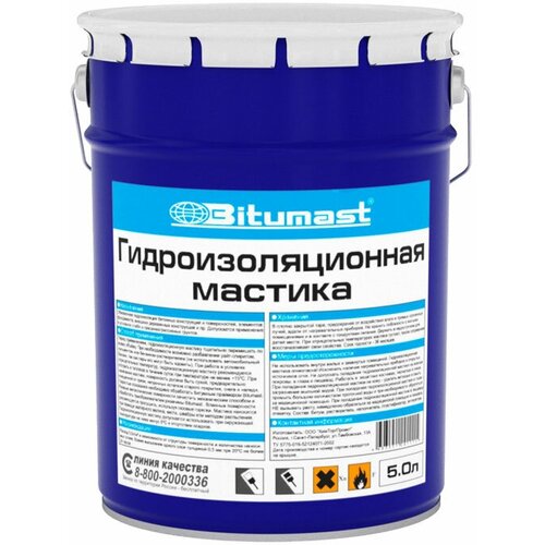 Битумная мастика Bitumast - это состав на основе нефтяного битума с добавлением профессиональных технических примесей и растворителя.ПреимуществаМастика готова к применению.В составе присутствует антисептическая добавка.Наносится кистью, валиком либо методом безвоздушного распыления.Время высыхания одного слоя составляет не более суток при температуре +20 градусов Цельсия.Область примененияПрименяется для обмазочной гидроизоляции поверхностей из дерева и бетона: стен, подвалов, элементов кровли, фундамента и перекрытий. Возможно использование при низких температурах от -20 градусов Цельсия, при этом мастику необходимо предварительно отогреть.Бренд Bitumast принадлежит производственной компании "ХимТоргПроект" и выпускает холодные битумно-полимерные мастики, горячие мастики, клеи. В производстве используется высококачественное сырье и применяются уникальные технологии, учитывающие особенности условий эксплуатации.