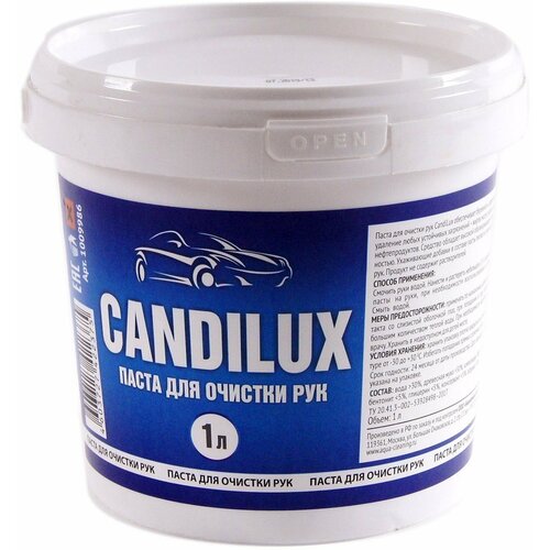 CANDILUX ACG Паста для очистки рук, средство для очистки рук от сильных загрязнений.Паста для очистки рук обеспечивает бережное и эффективное удаление любых устойчивых загрязнений, таких как нефтепродукты и их производные, масло и жир, сажу, графит и угольную пыль.Средство обладает высокой обезжиривающей способностью.В состав пасты для рук входят ухаживающие добавки, которые питают и смягчают кожу рук. Продукт не содержит растворителей.Имеет широкий спектр применения в производственном и бытовом секторе, в том числе применяется на автомоечных и шиномонтажных предприятиях.Способ применения:Возьмите небольшое количества средства, тщательно разотрите руки удаляя загрязнения, после тщательно промойте водой.