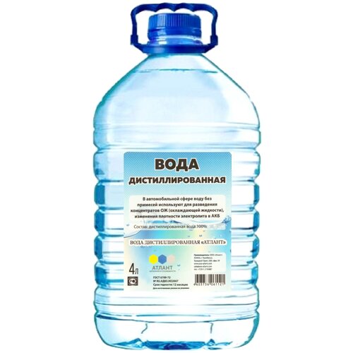 Вода дистиллированная атлант 4 л. Для АКБ, утюга, отпаривателя, увлажнителя воздуха и др. целей