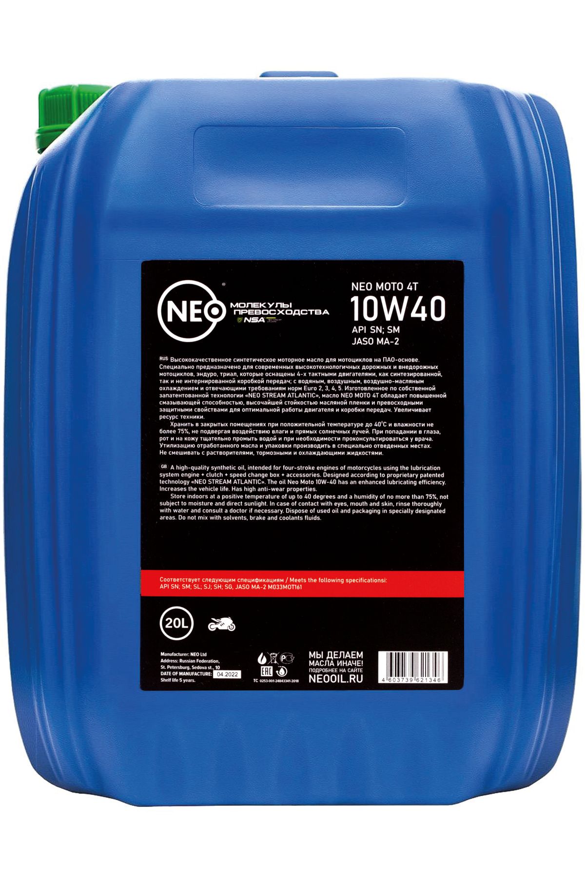 Моторное масло NEO NM4TPAO1040020 10w40 синтетическое 20л