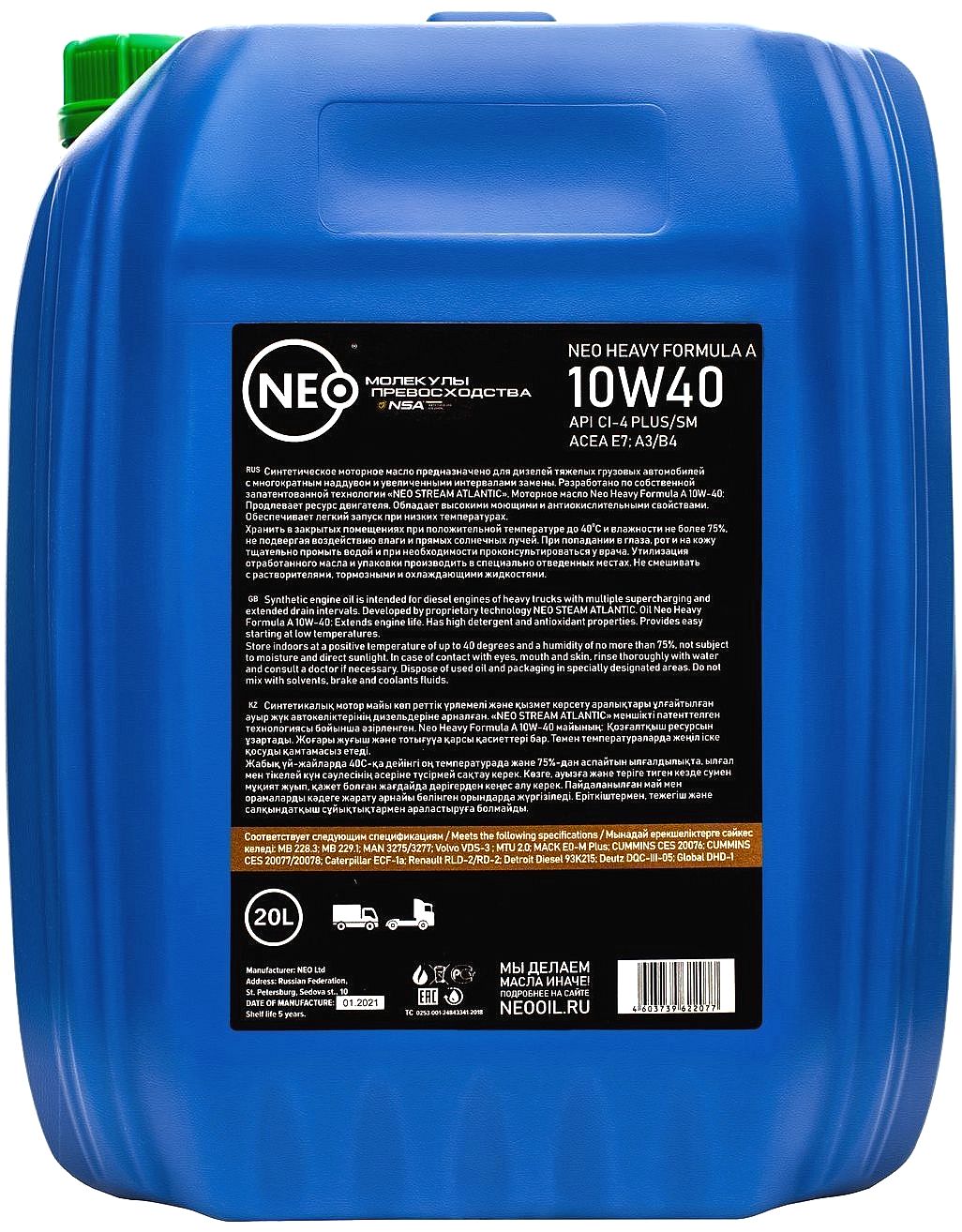 Универсальное синтетическое дизельное моторное масло премиум-класса категории Super High Performance Diesel (SHPD) с высочайшими эксплуатационными характеристиками, предназначенное для двигателей грузовых автомобилей, эксплуатируемых в нагруженных условиях магистральных перевозок, внедорожной техники, силовых установок и обеспечивающее исключительные параметры работы в современных двигателях с многократным наддувом и увеличенными интервалами обслуживания. Разработанное по собственной запатентованной технологии «NEO STREAM ATLANTIC», моторное масло Neo Motion Formula A 5W-30 обладает рядом исключительных свойств: · Увеличивает ресурс двигателя;· Обладает повышенной стойкостью к термическому окислению – снижение высокотемпературных и шламовых загрязнений ДВС;· Обеспечивает идеальную чистоту двигателя благодаря лучшей физике выноса сажевых частиц из цилиндро-поршневой группы;· Обладает повышенной смазывающей способностью;· Имеет высочайшие противоизносные и эксплуатационные свойства – максимальная защита от коррозионного и абразивного износа деталей ДВС;Купить моторное масло NEO - означает прибрести для своего автомобиля, защиту, долговечность и безопасность.