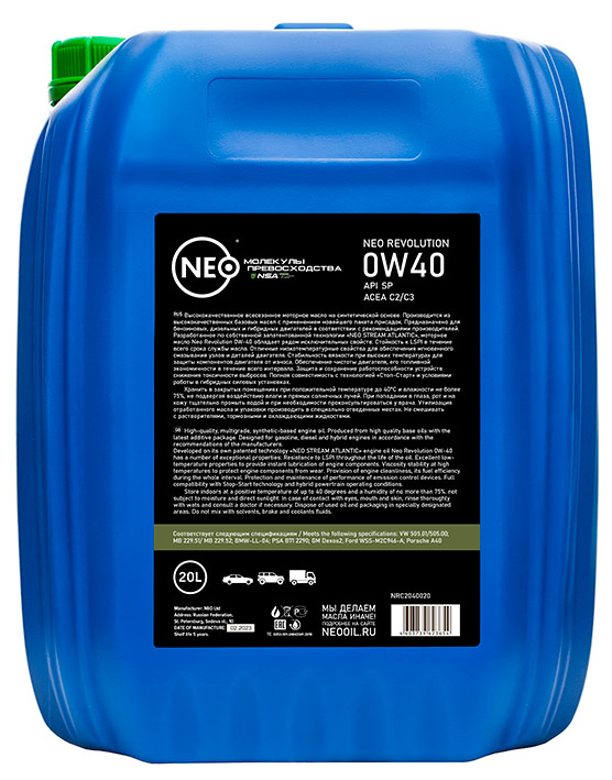 Синтетическое всесезонное моторное масло класса «Low SAPS». Произведено из высококачественных базовых масел с применением новейшего пакета присадок и модификаторов вязкости. Предназначено для бензиновых, дизельных и гибридных двигателей в соответствии с приведенными ниже спецификациями автопроизводителей для автомобилей, оснащенных системами понижения токсичности отработанных газов (DPF/GPF, TWC).Разработанное по собственной запатентованной технологии «NEO STREAM ATLANTIC», моторное масло Neo Revolution 0W-40 обладает рядом исключительных свойств:Стойкость к LSPI в течение всего срока службы маслаОтличные низкотемпературные свойства для обеспечения мгновенного смазывания узлов и деталей двигателя;Стабильность вязкости при высоких температурах для защиты компонентов двигателя от износа;Обеспечение чистоты двигателя, его топливной экономичности в течение всего интервалаЗащита и сохранение работоспособности устройств снижения токсичности выбросов;Полная совместимость с технологией «Стоп-Старт» и условиями работы в гибридных силовых установках.Купить моторное масло NEO - означает прибрести для своего автомобиля, защиту, долговечность и безопасность.