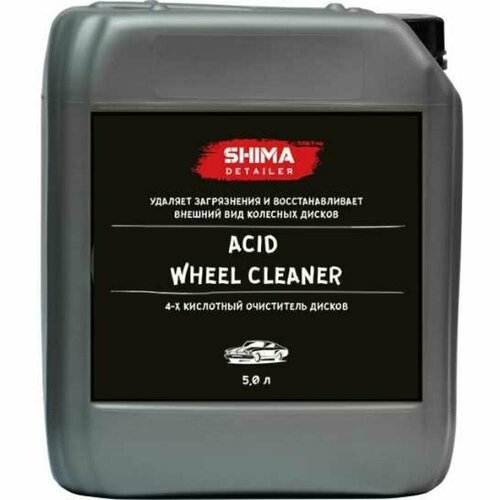 Очиститель дисков 4-х кислотный SHIMA DETAILER ACID WHEEL CLEANER 500 мл, 4603740921787 - концентрированный усиленный состав для очистки колесных дисков эффективно удаляет тормозную пыль, нагар и дорожные загрязнения. Оптимальное сочетание 4-х видов кислот позволяет быстро справиться даже с очень застарелыми загрязнениями. Эффективно борется со ржавчиной, минеральными отложениями, известковым налетом и тормозным нагаром. Состав не рекомендуется применять на алюминиевых, анодированных и хромированных поверхностях! Способ применения:1. Разбавить состав с водой в пропорции 1:5 (при сильных загрязнениях) - 1:10 (при легких не застарелых загрязнениях).2. Нанести готовый состав на диски, предварительно вымытые шампунем для бесконтактной мойки. Подождать 2-3 минуты.3. Обработать поверхность щетками для дисков.4. Смыть состав большим количеством воды с помощью аппарата высокого давления.
