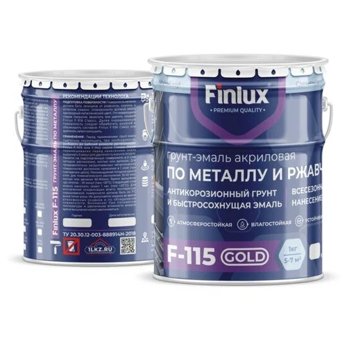 Finlux F-115 Gold – Представляем нашу грунтовочную эмаль глубокого матового цвета прямо по ржавчине на металле! Эта краска высшего качества предназначена для придания вашим металлическим поверхностям 3D-эффекта с потрясающим глубоким матовым покрытием. Краска основана на акриловой основе, что делает ее не только красивой, но и прочной и долговечной. Благодаря сроку службы до 12 лет вы можете быть уверены, что эта краска защитит ваши металлические поверхности от ржавчины и коррозии на долгие годы.Одним из преимуществ нашей грунтовочной эмали является то, что ее можно наносить непосредственно на ржавчину, экономя ваше время и усилия при подготовке поверхности. Просто очистите поверхность от остатков ржавчины, пыли или мусора, и вы готовы приступить к покраске. Независимо от того, работаете ли вы с трубами, перилами, заборами, гаражными воротами или любой другой металлической поверхностью, эта краска обеспечит защиту от ржавчины и потрясающую отделку, которую вы ищете.Так почему же вы выбрали нашу грунтовочную эмаль с глубоким матовым покрытием прямо по ржавчине на металле? Вот лишь несколько причин:Обеспечивает потрясающее, глубоко-матовое покрытие с 3D-эффектомНа основе акриловой основы для прочности и долговечностиМожет наноситься непосредственно на ржавчину, экономя ваше время и усилия при подготовке поверхностиОбеспечивает защиту от ржавчины на срок до 12 летПодходит для использования на различных металлических поверхностях, включая трубы, перила, заборы, гаражные ворота и многое другоеТак что, если вы ищете краску, которая обеспечивает одновременно красоту и защиту, выбирайте нашу грунтовочную эмаль глубокого матового цвета прямо по ржавчине на металле!