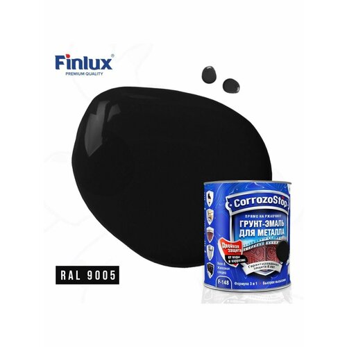 Универсальная грунт-эмаль 3в1 по металлу и ржавчине Finlux F-148, глянцевая, ral 9005, 0,75 л