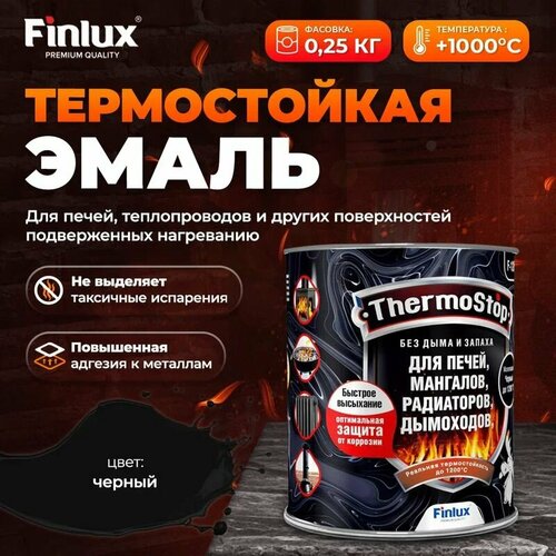 Грунт-эмаль Finlux F-1200, краска по металлу антикоррозийная до +1200C, матовое покрытие, Черный, 0,25 кг, 1000 С