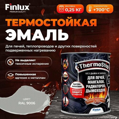 Краска, Грунт-Эмаль Finlux F-1200 до +1200C Антикоррозионная, для печей, мангалов, дымоходов, радиаторов, суппортов, глушителей Гладкая, Быстросохнущая, Матовое покрытие, Ral 9006, 0,25 кг, 700 С