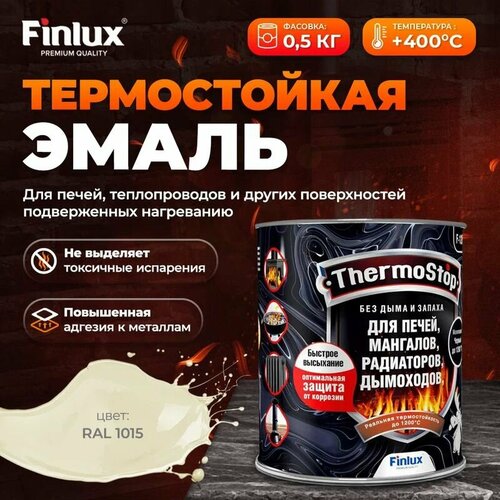 Краска, Грунт-Эмаль Finlux F-1200 до +1200C Антикоррозионная, для печей, мангалов, дымоходов, радиаторов, суппортов, глушителей Гладкая, Быстросохнущая, Матовое покрытие, ral 1015, 0,5 кг, 400 С
