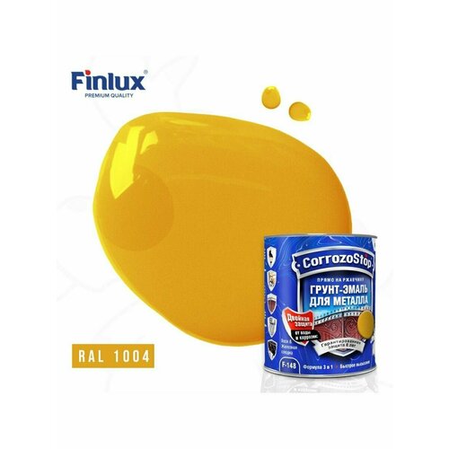 Универсальная грунт-эмаль 3в1 по металлу и ржавчине Finlux F-148, глянцевая, ral 1004, 0,25 л