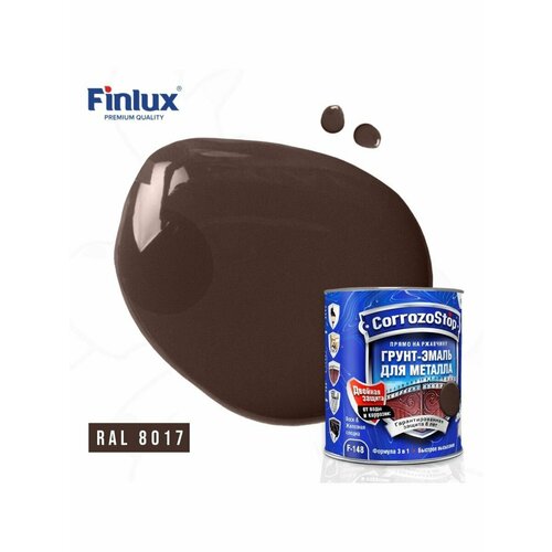 Универсальная грунт-эмаль 3в1 по металлу и ржавчине Finlux F-148, глянцевая, ral 8017, 0,25 л