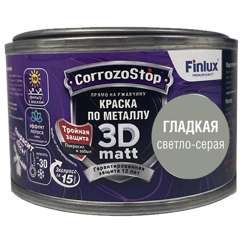 Антикоррозионная грунт-эмаль по металлу и ржавчине Finlux F-115, глубокоматовая, Ral 7042, 0,25л