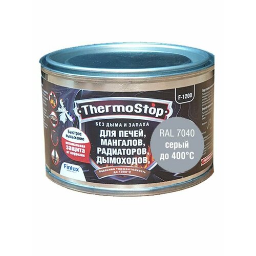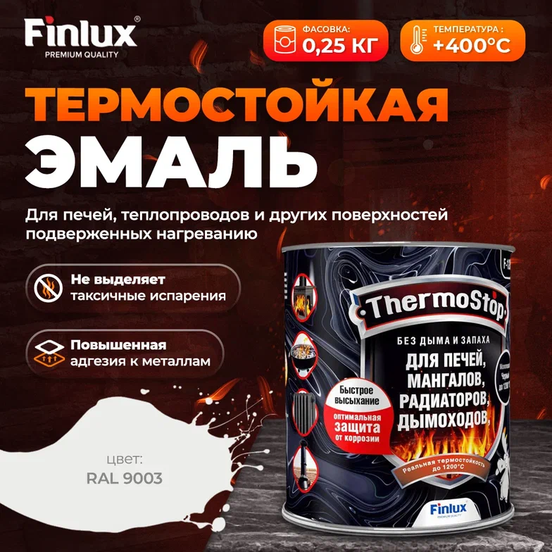 Грунт-Эмаль Finlux F-1200 до +1200C для печей, мангалов, дымоходов, радиаторов, суппортов, глушителей, матовое покрытие, ral 9003, 0,25 кг, 400 С