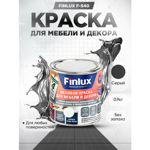 Краска для мебели и декора любых деревянных поверхностей, кухонь и предметов интерьера Finlux F-540-Серый-0,9 кг