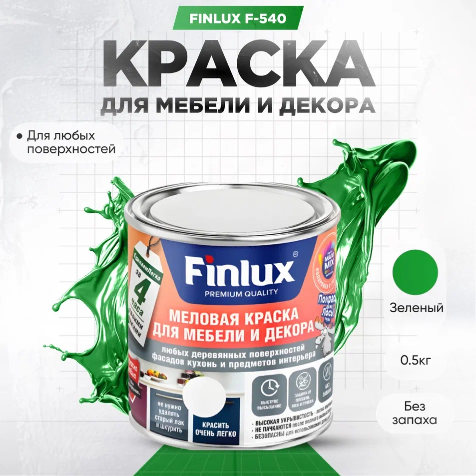 Краска для мебели и декора любых деревянных поверхностей, кухонь и предметов интерьера Finlux F-540-Зеленый-0,5 кг