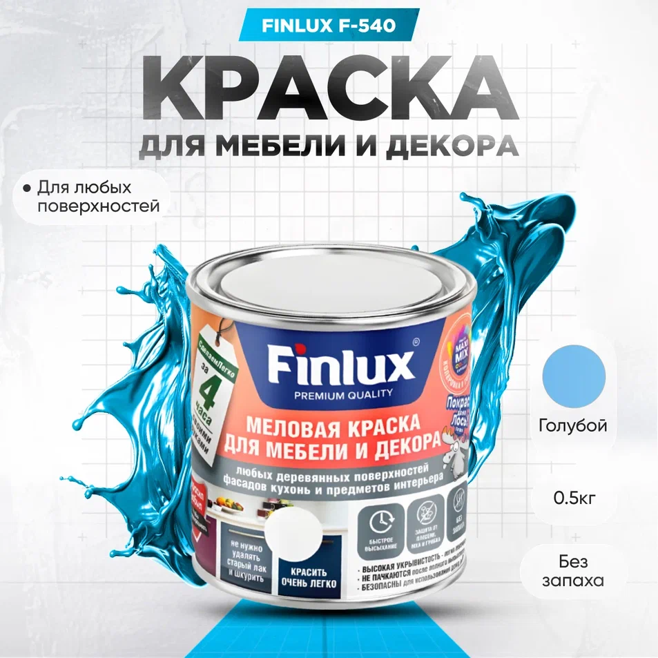 Краска для мебели и декора любых деревянных поверхностей, кухонь и предметов интерьера Finlux F-540-Голубой-0,5 кг