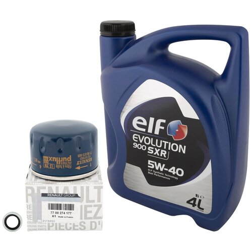 Набор для замены масла в двигателе Renault Logan и Sandero 1.6 K7M (с маслом ELF EVOLUTION 5W-40 11100501 и оригинальным масляным фильтром 7700274177)