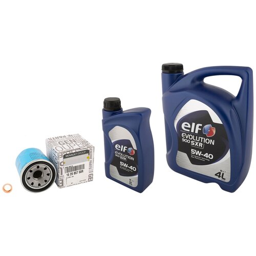 Оригинальный набор для технического обслуживания автомобилей Renault Kaptur , Duster, Logan, Sandero, Arkana с двигателем 1,6 H4M.В состав набора входит все, что необходимо для замены масла на вашем Renault:- Моторное масло ELF EVOLUTION 900 SXR 5W40 (4 л 11100501 - 1 шт.- Моторное масло ELF EVOLUTION 900 SXR 5W40 (1 л 11090301 - 1 шт.- Фильтр масляный оригинальный Renault 152085758R- Уплотнительное кольцо сливной пробки поддона двигателя.- Подробная инструкция по самостоятельной замене масла в двигателе.Удобно - все детали приходят одновременно в ближайший к Вам пункт выдачи.Выгодно – комплектом дешевле.Проверено – все запчасти из комплекта мы опробовали на собственных сервисных станциях в Москве и Петербурге. Гарантируем качество и идеальную совместимость с вашим автомобилем!