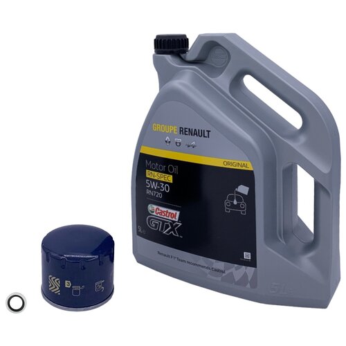 Набор для замены масла в двигателе Renault Duster 1.5 K9K (дизель) (с маслом Castrol 5W-30 GTX RN 0720 OEM: 7711943687 и масляным фильтром)