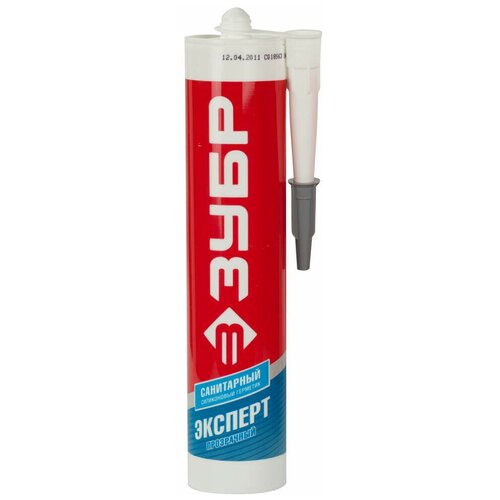 Герметик силиконовый ЗУБР "эксперт" прозрачный, санитарный, для помещений с влажностью, 260 мл