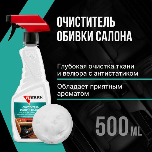 Очиститель велюра и обивки салона KERRY, антибактериальный состав с антистатиком для глубокой очистки, 500 мл