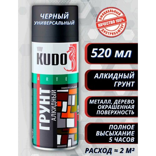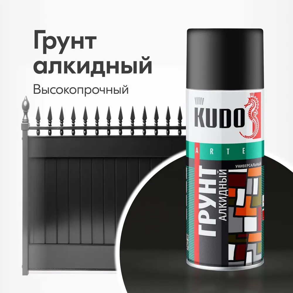 Грунт Kudo алкидный, универсальный, аэрозоль, чёрный, 520 мл