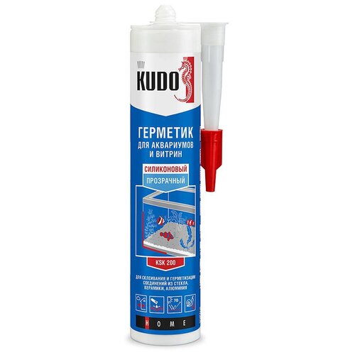 Герметик для аквариумов и витрин KUDO прозрачный 280 мл KSK-200 применяется при изготовлении и ремонте аквариумов, террариумов, для надежной герметизации соединений из таких материалов, как стекло, керамика, нержавеющая сталь, анодированный алюминий, дерево, ПВХПредназначен для внутренних и наружных работ. Возможно использование в помещениях с повышенной влажностью.Прочный долговечный шов отличается устойчивостью к УФ-излучению, воздействию большинства моющих и чистящих средств.При склеивании аквариумов объёмом до 150 литров дополнительное укрепление конструкции не требуется.