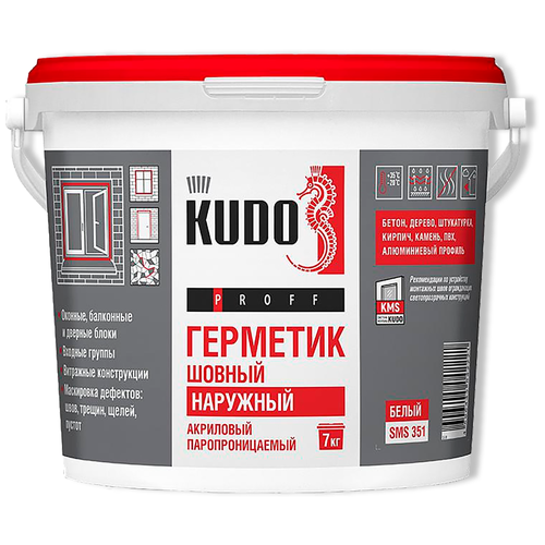 Акриловый паропроницаемый шовный герметик Kudo Proff наружный, белый, 7 кг SMS-351 .