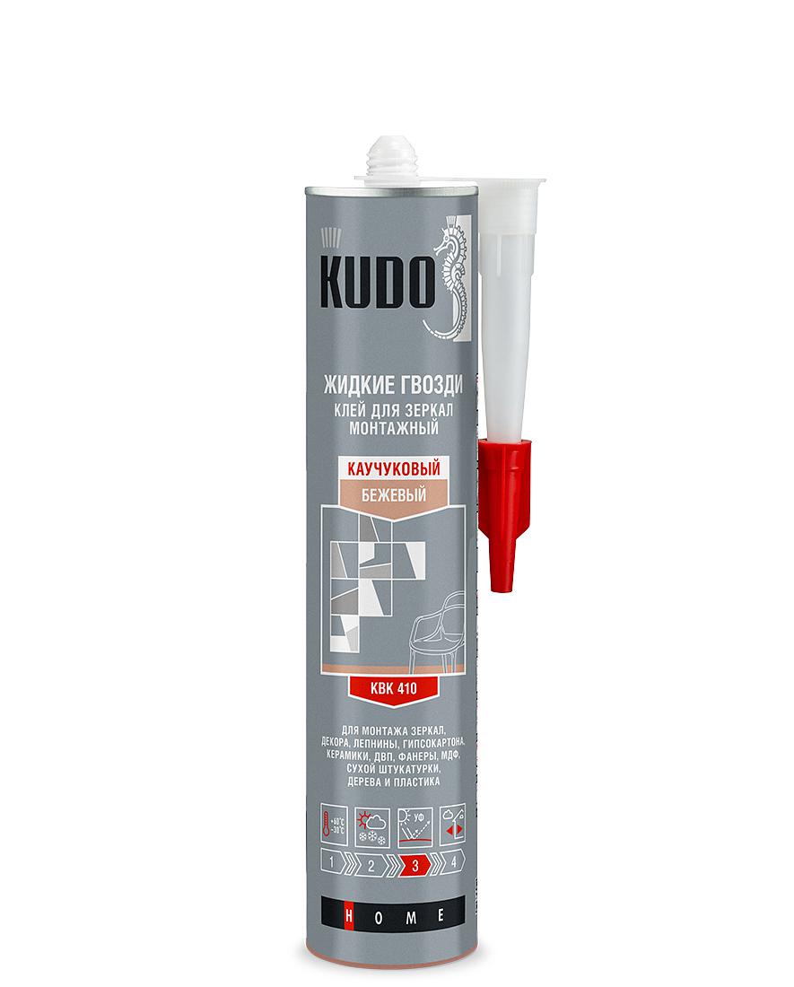 Клей монтажный KUDO универсальный каучуковый для зеркал «жидкие гвозди» Бежевый KBK-410Высококачественный однокомпонентный универсальный клей «жидкие гвозди» KUDO® на каучуковой основе специально разработан для приклеивания зеркал на поверхности из металла, древесины, ДСП, ДВП, кирпича, камня, различных видов пластика и др.Клей каучуковые «жидкие гвозди» идеально подходит для приклеивания строительных материалов при ремонтных и отделочных работах: сборки деревянных конструкций, приклеивания гипсокартона, керамической плитки, OSB-плит, декоративных элементов (в том числе из полистирола), утеплителей различных видов. Существенно ускоряет отделочные работы, экономичен и прост в использовании.Влагостойкий, предназначен для внутренних и наружных работ, может наноситься при температурах от –20°С до +38°С. Характеризуется высокой первоначальной силой схватывания. Тиксотропный, не стекает с вертикальных поверхностей. Не содержит агрессивных растворителей, безопасен для амальгамы, пригоден для склеивания изделий из деликатных материалов. Химически нейтральный, не вызывает коррозии металлов.ПреимуществаПревосходная адгезия к металлу, дереву, бетону, кирпичу, камню, гипсокартону, пластику и другим строительным материалам.Устойчив к нагрузкам и вибрациям, имеет широкий температурный диапазон эксплуатации: от –30°С до +60°С.Не содержит агрессивных растворителей и кислот, не вызывает коррозии.На 23-24 погонных метра при диаметре валика 4 мм.Цвет: бежевый.Дополнительная информацияполное название Универсальный монтажный клей для зеркал на каучуковой основеоснова клея Каучуковыйназначение Клей монтажныйобъем 300 млсостав синтетический каучук, пластификатор, минеральный наполнитель, функциональные и адгезионные добавки, растворители.хранение Хранить в герметично закрытой оригинальной упаковке при температуре не выше +30°С в крытых сухих вентилируемых складских помещениях на расстоянии не менее 1 м от нагревательных приборов. При транспортировке допускается 5 циклов замораживания.срок годности 36 месяцев при соблюдении правил храненияПрименениеРаботы рекомендуется проводить при температуре от +5°С до +35°С.Клей наносить на чистые, сухие и обезжиренные поверхности. Для обезжиривания и очистки рекомендуется использовать KU-9100 «Удалитель силикона».Для аккуратной работы использовать маскирующую ленту и удалить её после образования поверхностной плёнки на клеевом слое.Отрезать винтовую головку тубы над резьбой, в образовавшемся отверстии с помощью насадки-носика проткнуть мембрану из фольги.Навинтить насадку на тубу, срезать носик под углом 45°, чтобы образовалось достаточное отверстие для дозирования.Клей наносить при помощи строительного пистолета отдельными точками или сплошным валиком в виде змейки.Приклеивание легких элементов (двухэтапный метод): нанести клей на одну из склеиваемых поверхностей, плотно прижать и сразу разъединить. Убедиться, что клей нанесен на о? е поверхности. Выдержать 10-30 секунд и снова сильно прижать поверхности друг к другу. Для обеспечения плотного контакта рекомендуется простучать зоны приклеивания резиновым молотком.В случае неправильной приклейки элемент повторно не отклеивать, в течение 5 минут можно скорректировать его положение путем передвижения.Приклеивание тяжелых элементов (одноэ