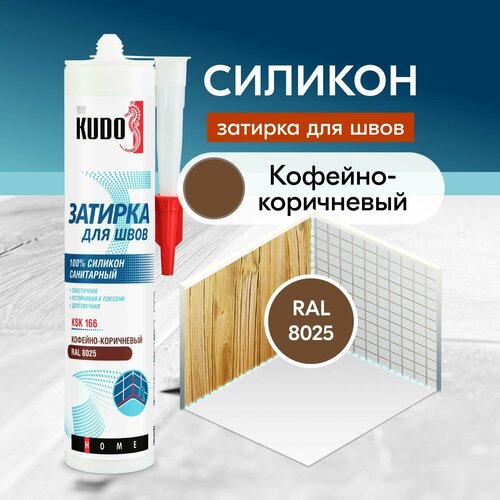 Герметик-затирка для швов KUDO "KSK 166" силиконовый санитарный, кофейно-коричневый RAL 8025, 280 мл