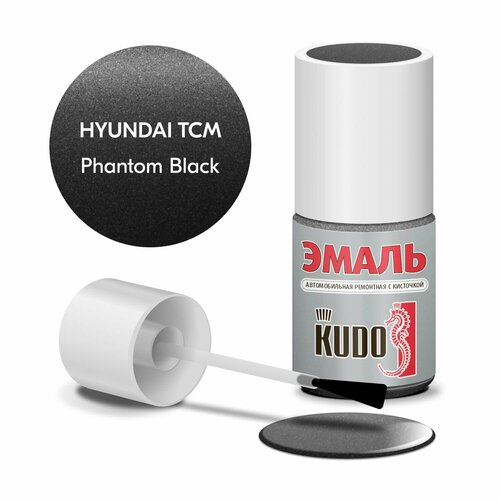 Эмаль автомобильная KUDO ремонтная с кисточкой, Подкраска сколов и царапин для авто, Эфиро-целлюлозная, Hyundai TCM Phantom Black металлик