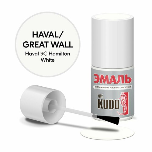 Эмаль автомобильная KUDO ремонтная с кисточкой, Подкраска сколов и царапин для авто, Эфиро-целлюлозная, Great Wall Haval 9C HAMILTON WHITE