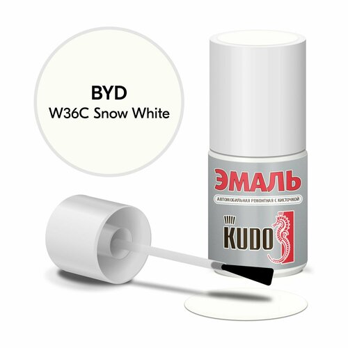 Эмаль автомобильная KUDO ремонтная с кисточкой, Подкраска сколов и царапин для авто, Эфиро-целлюлозная, BYD W36C SNOW WHITE