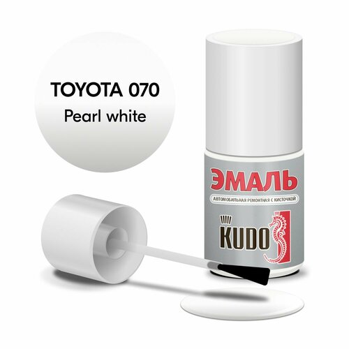 Эмаль автомобильная KUDO ремонтная с кисточкой, Подкраска сколов и царапин для авто, Эфиро-целлюлозная, TOYOTA 070 Pearl white металлик